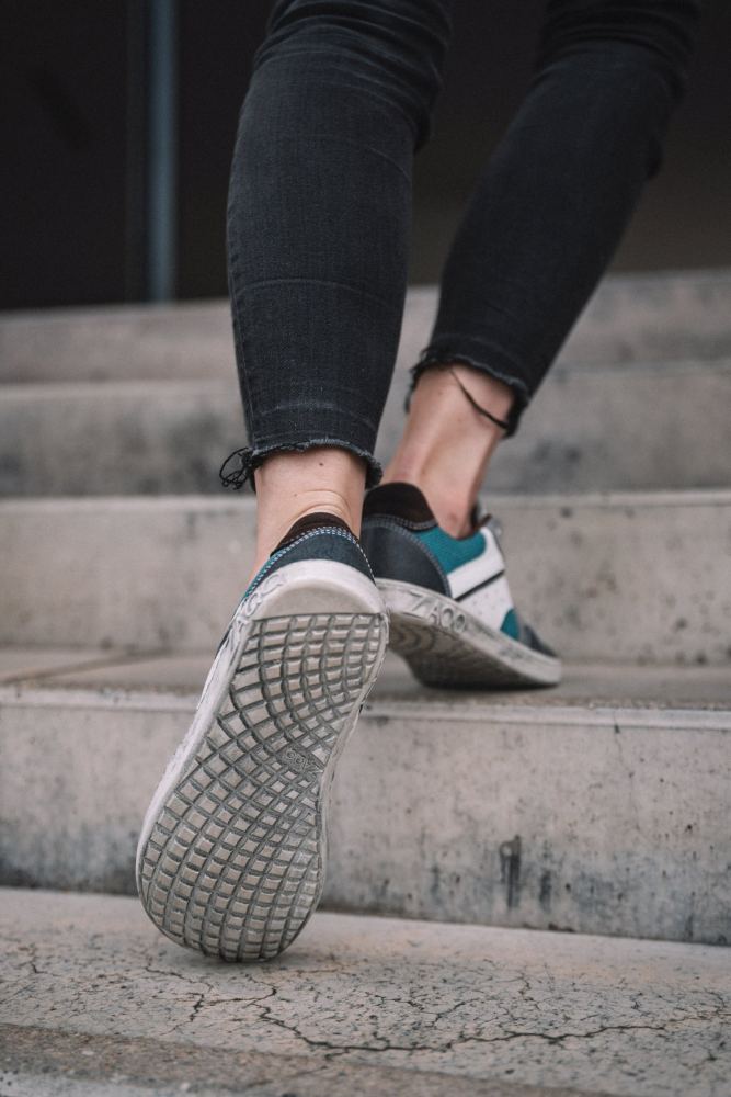 - Gumová podešev s nulovou patou, tím uvolňuje páteř a chrání klouby, podporuje přirozené držení těla