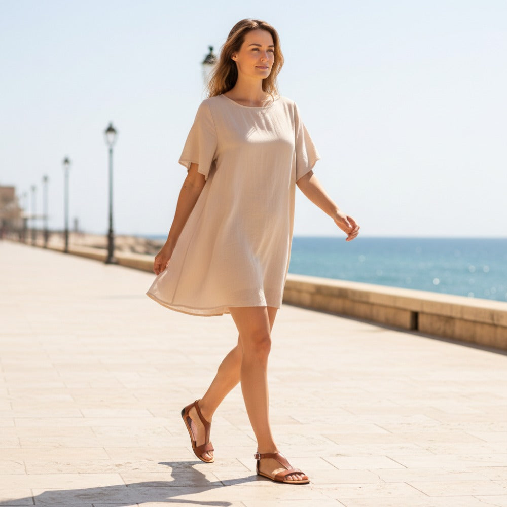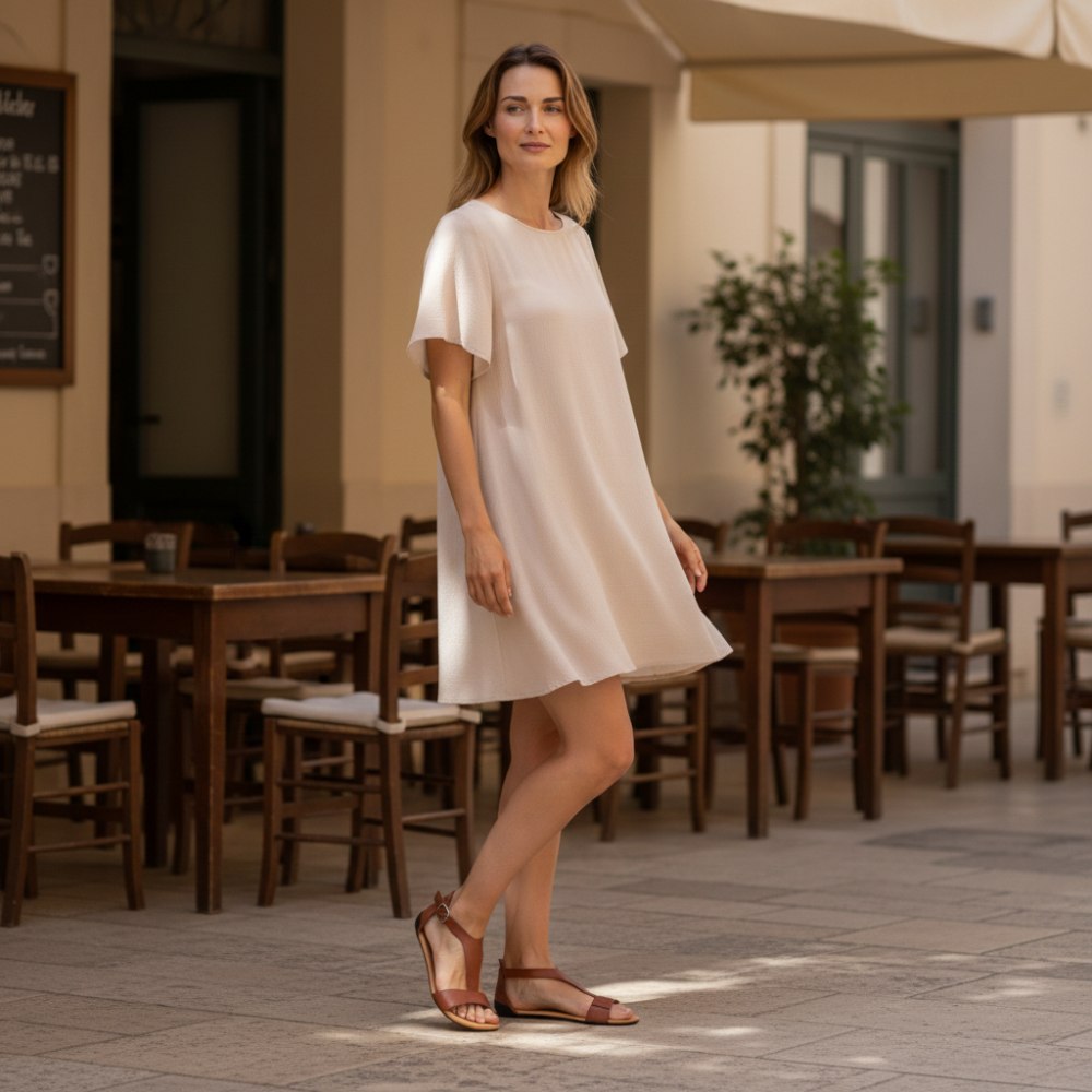Poskytli jsme přední popruh úzkým elastickým pásem. Je to stěží viditelné, ale dává vám nezaměnitelné pohodlí. Popruh se dokonale přizpůsobí vaší noze. V oblasti kotníku zavřete sandály jemnou sponou.