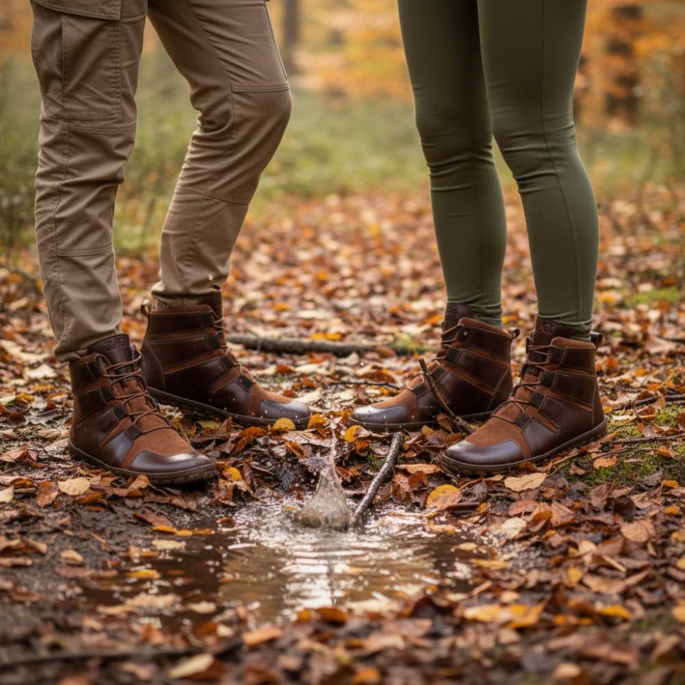 Venkovní gumová podešev s nulovou patou, tím uvolňuje páteř a chrání klouby, podporuje přirozené držení těla