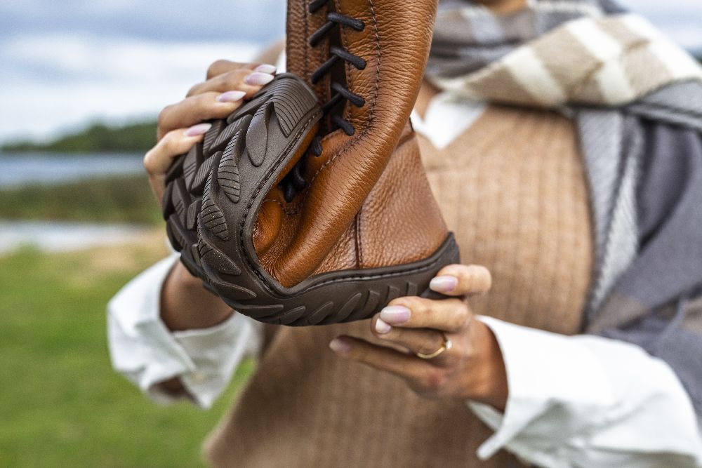 - Gumová podešev s nulovou patou, tím uvolňuje páteř a chrání klouby, podporuje přirozené držení těla