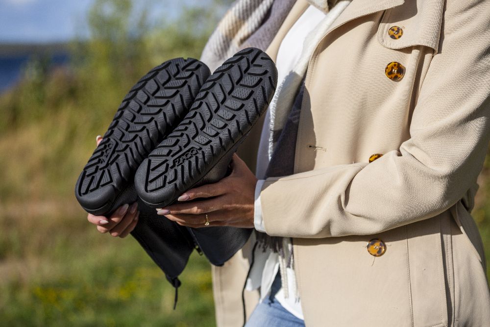 - Gumová podešev s nulovou patou, tím uvolňuje páteř a chrání klouby, podporuje přirozené držení těla