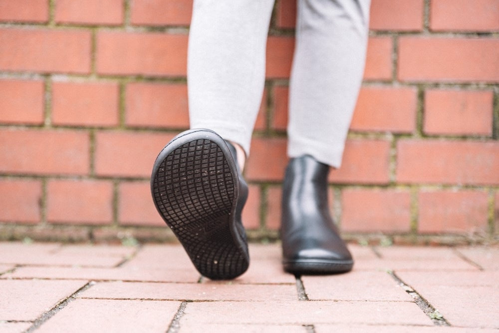 Gumová podešev s nulovou patou, tím uvolňuje páteř a chrání klouby, podporuje přirozené držení těla