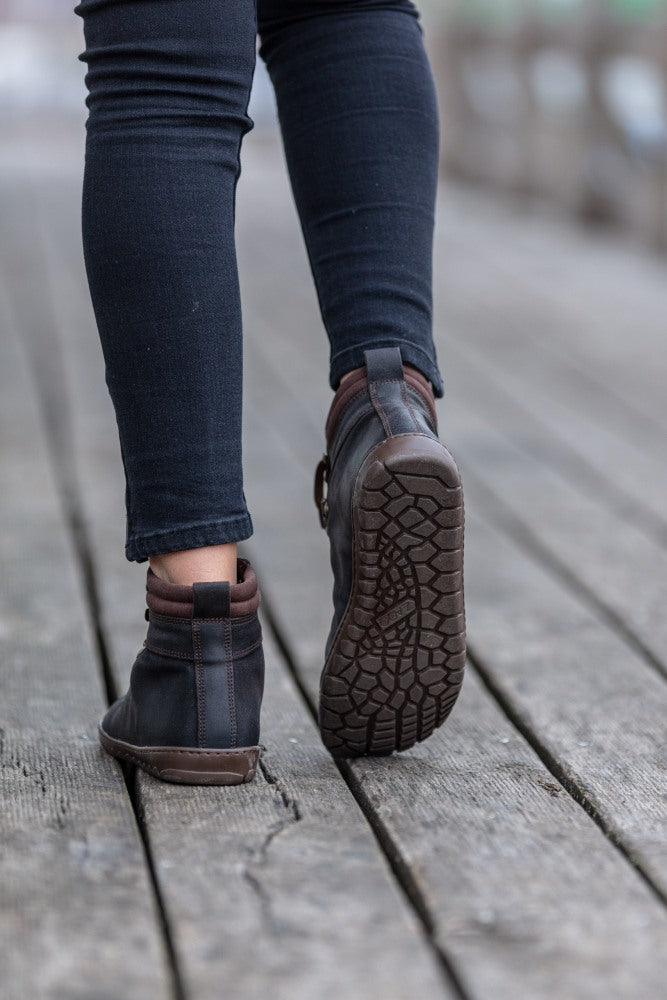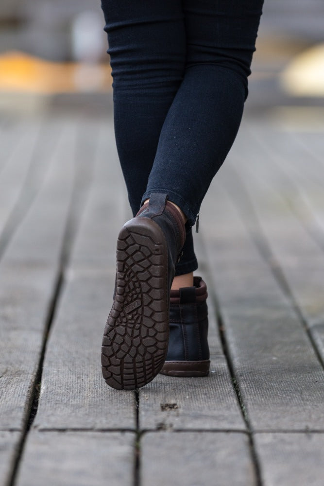 Venkovní gumová podešev s nulovou patou, tím uvolňuje páteř a chrání klouby, podporuje přirozené držení těla