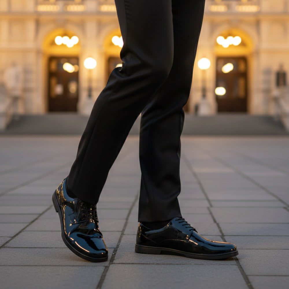 Lesklá patentová kůže dává této derby botě nezaměnitelnou sofistikovanost, díky níž je všestranný společník pro různé příležitosti. Ať už formální obchodní schůzky, společenské akce nebo elegantní večerní akce - tato bota vždy stanoví jasné prohlášení.