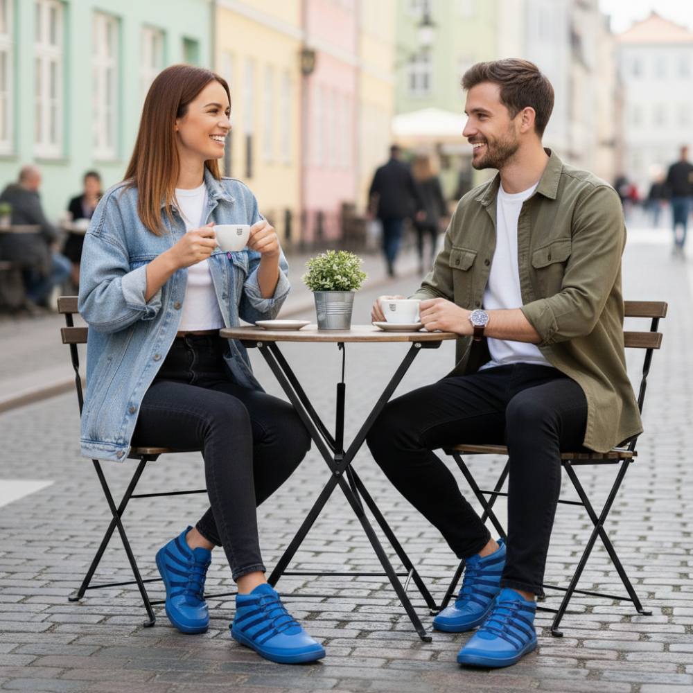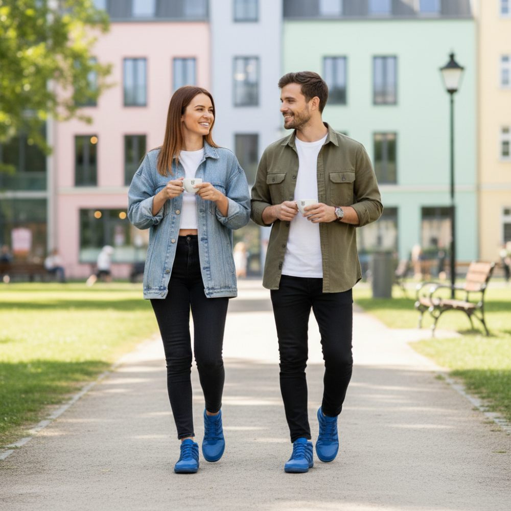 Gumová podešev s nulovou patou, tím uvolňuje páteř a chrání klouby, podporuje přirozené držení těla