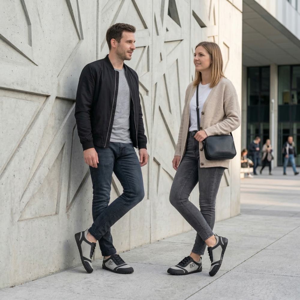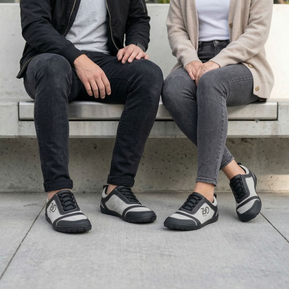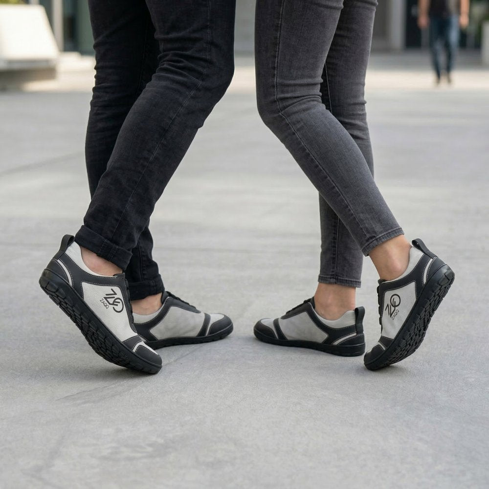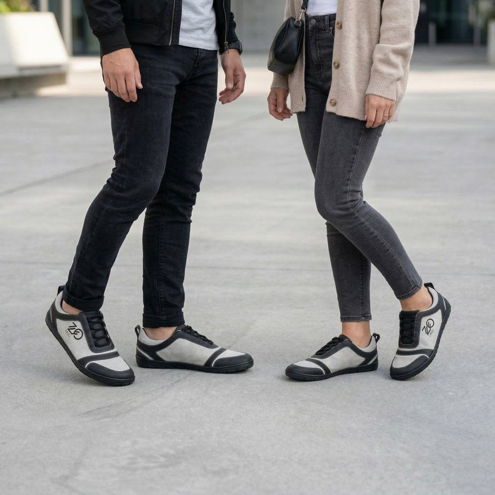 Naše SQILL je perfektní jako bosní běžecká bota, protože je super lehká a díky kombinaci veganské mikrovlákna a tenké vnitřní podšívky je obzvláště prodyšná. Asymetrický řez této boty naboso z něj dělá jemný očí. Díky jednoduchým barvám vyrobeným z černé a světle šedé to vypadá nejen dobře ve sportu, ale také jako teniska v každodenním životě.