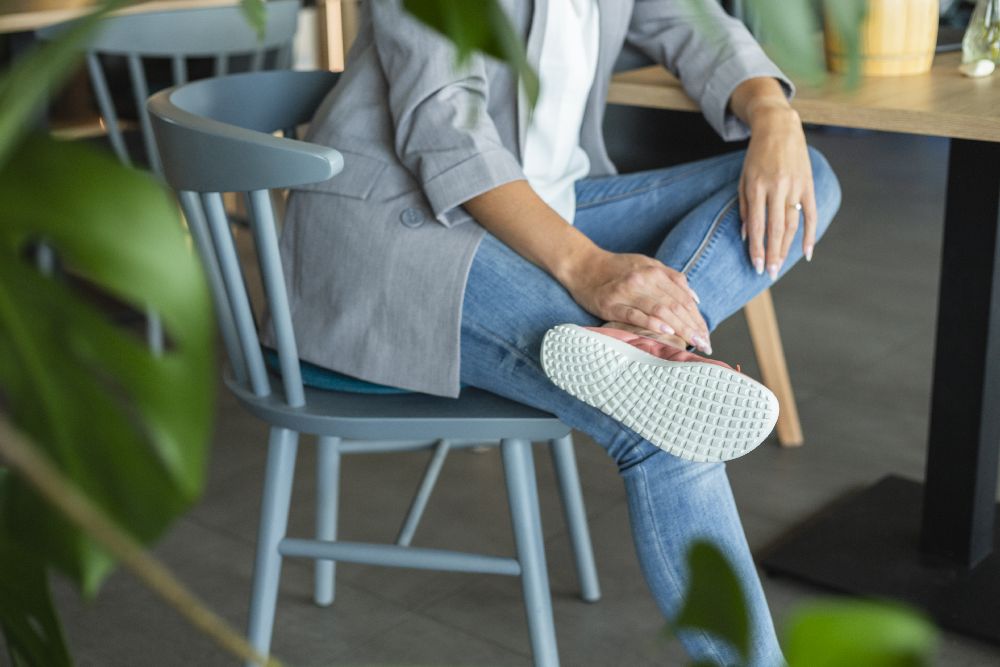 Gumová podešev s nulovou patou, tím uvolňuje páteř a chrání klouby, podporuje přirozené držení těla