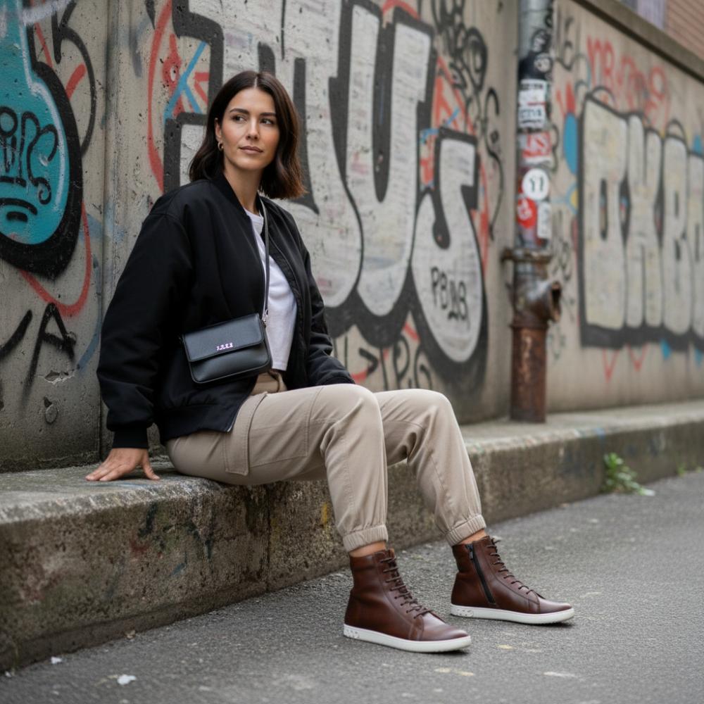 Vytváříme vintage efekt s jemně broušenou, tmavě hnědou kůží Nappa a jasnou vnitřní podšívkou. Kvůli bílé podrážce s jemnou ZAQQ-Logo bota vypadá naprosto moderně.