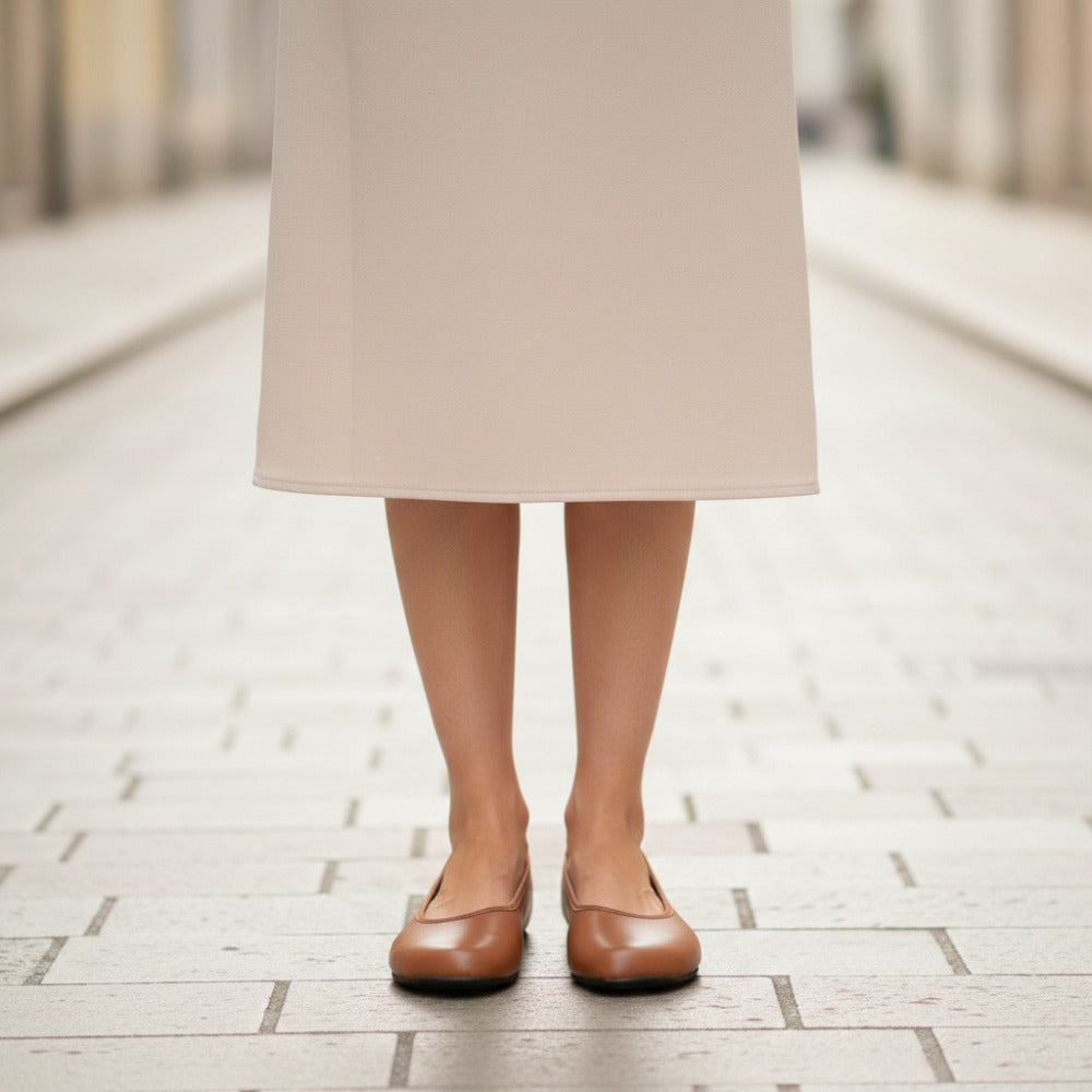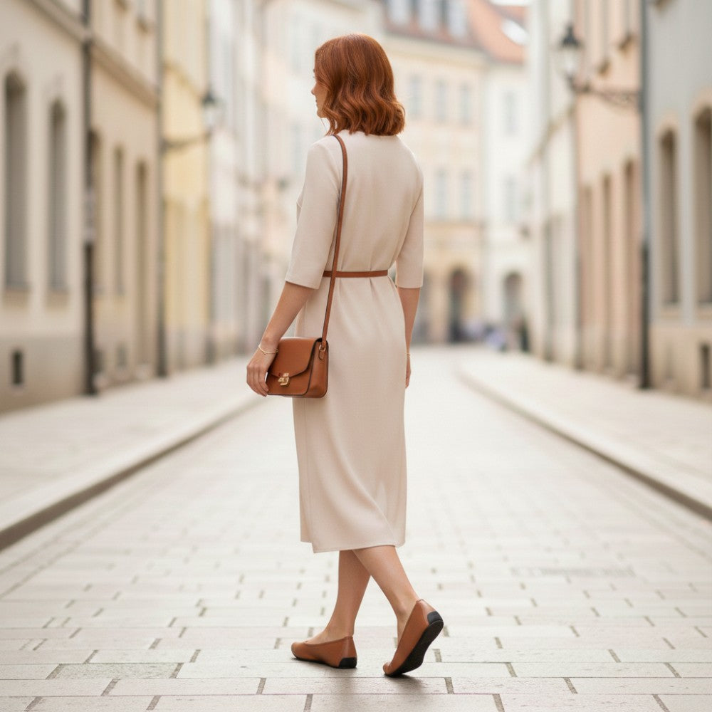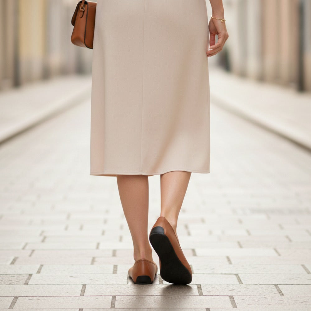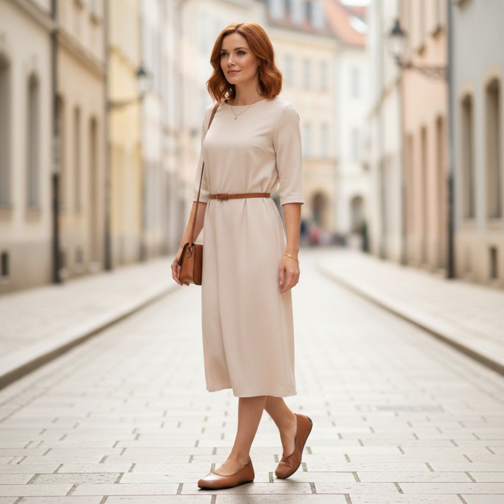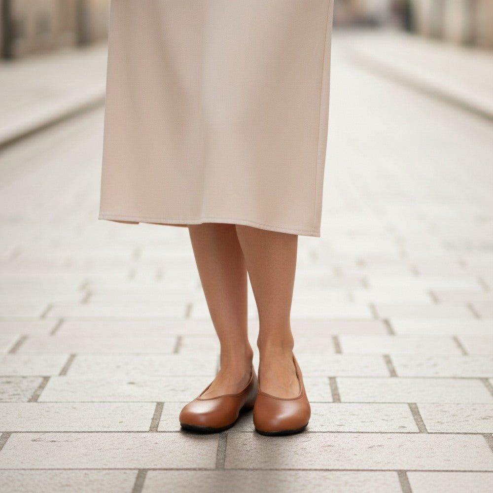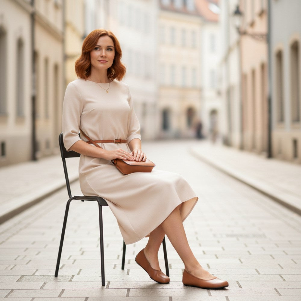Hledáte jednoduchou balerínu, která vypadá ženská a byla vyrobena ze 100% veganských materiálů? Tady je, náš Qarma Vegan Cognac.