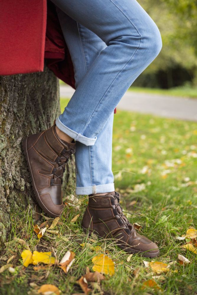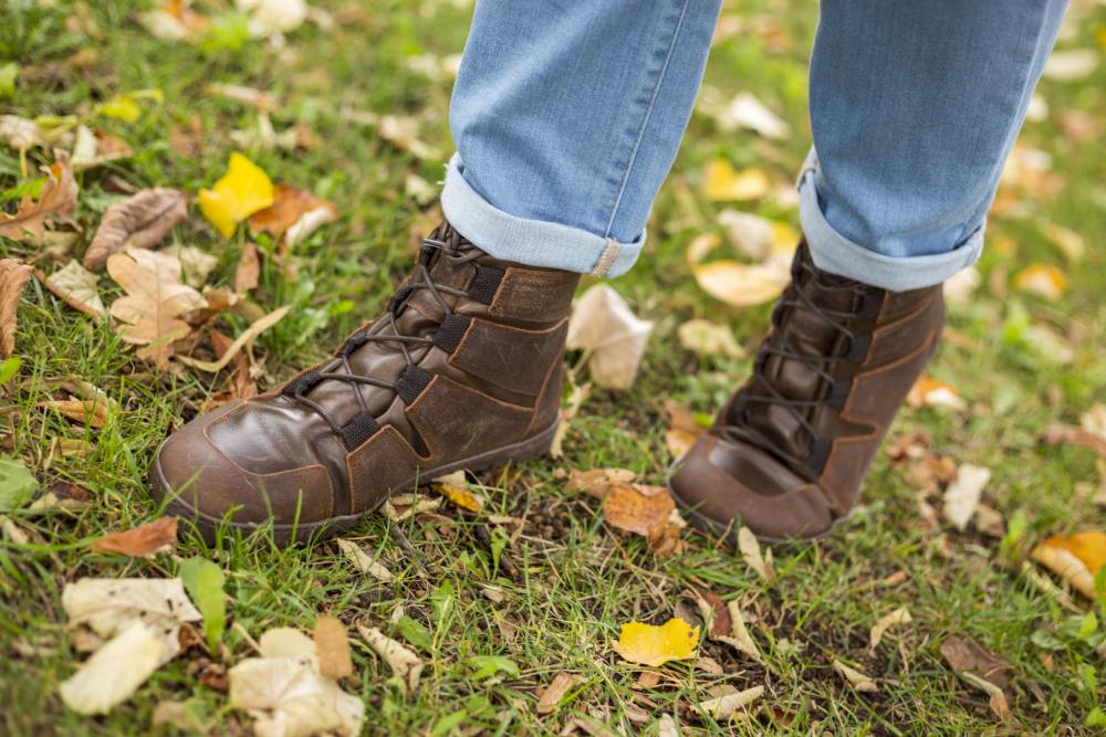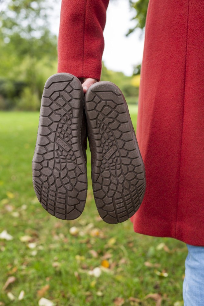 Venkovní gumová podešev s nulovou patou, tím uvolňuje páteř a chrání klouby, podporuje přirozené držení těla